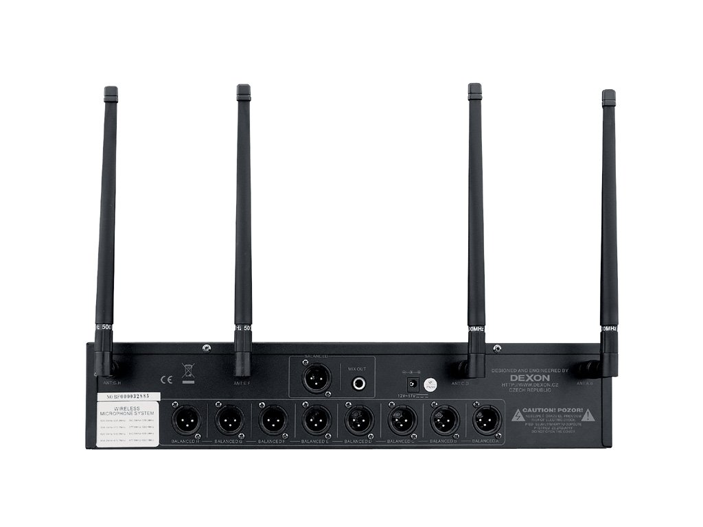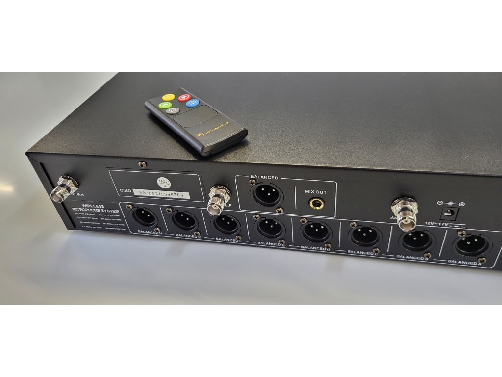 - možnost teoreticky kombinovat až 32 takovýchto sad dohromady, tj. 32 přijímačů s celkem 256 mikrofony, dovolují-li to příjmové a frekvenční podmínky