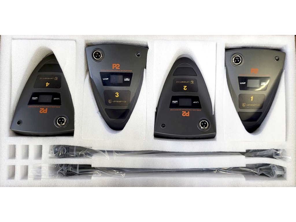 Systém je možné samozřejmě rozšiřovat pořízením další sady, tzn. že přibývá opět jedna přijímací stanice a osm mikrofonů. Maximální konfigurace je 32 přijímačů a 256 stolních mikrofonů. Nově je možné k sadě dokoupit ruční mikrofon pro dalšího nesedícího řečníka, např. z publika. Nemusíte se obávat ani problému s naladěním mikrofonů, protože celá bezdrátová komunikace je obousměrná s využitím IR přenosu, a tak mikrofony jsou laděny snadno a rychle podle požadavku z centrální přijímací stanice.